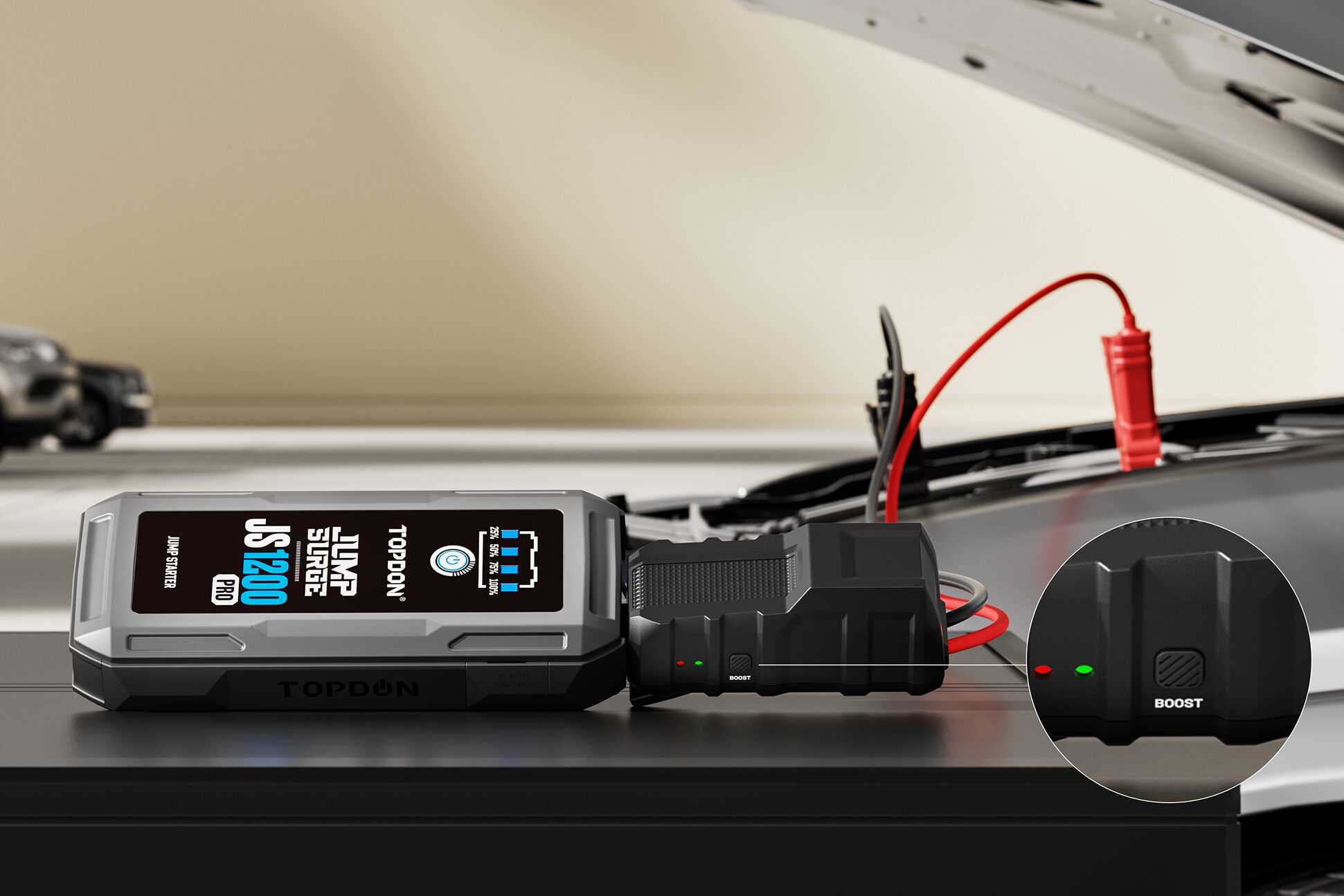 TOPDON JumpSurge 1200 PRO poskytuje spolehlivou pomoc v situaci, kdy baterie vozidla selže. Se špičkovým startovacím proudem 1800 A je určen pro 12 V vozidla s benzínovými motory do objemu 6,5 l a dieselovými motory do 4,0 l. Zajišťuje rychlý a bezpečný start bez zbytečných komplikací – jistotu, že můžete pokračovat v jízdě bez čekání na asistenci.