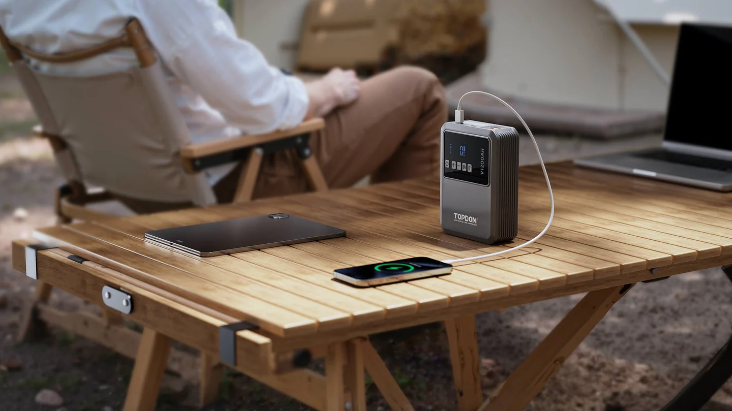 Díky baterii s kapacitou 10000 mAh dokáže V1200air nabíjet váš telefon, GPS nebo světla přes USB-A, takže budete mít energii i na cestách.