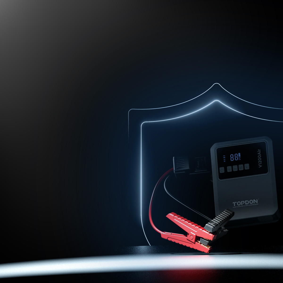 TOPDON V1200 Air kombinuje výkonný startovací zdroj a kompresor v jednom kompaktním zařízení. Se špičkovým proudem 1200 A spolehlivě nastartuje 12 V osobní vozy, motocykly i další vozidla s benzínovými motory do objemu 6,0 l a dieselovými do 4,5 l. Integrovaný kompresor nabízí 5 inteligentních režimů huštění, které umožňují rychlé a přesné dofouknutí pneumatik bez složitého nastavování. Zařízení je vybaveno 7vrstvou bezpečnostní ochranou pro maximální jistotu při používání a přehledným LED světlem se třemi režimy (běžné svícení, SOS a stroboskop). Díky lehké a kompaktní konstrukci se V1200 Air snadno vejde do kufru nebo boxu s nářadím a je vždy připraven poskytnout energii i tlak vzduchu, kdykoli je potřeba.